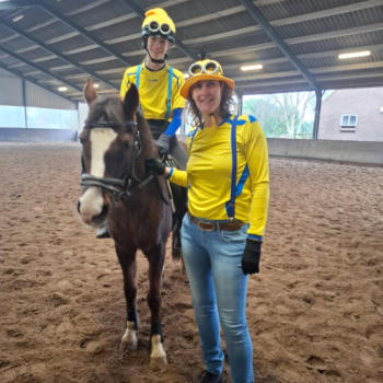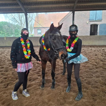 Carnaval 2026...... wat was het weer gezellig! Snelste Tijd : Eveline en Fien met Avanti.Mooiste outfit ex aequo: Tessa / Inez (de clowns) en Sara / Danique (Lilo & Stitch)De foto's en het filmpje spreken verder voor zich. Jasmijn loopt haar laatste stage periode bij ons en heeft afgelopen weken 2 examens gehaald voor haar opleiding bedrijfsleider paardenhouderij Barneveld. Van harte gefeliciteerd!! Op naar de laatste examens. Maar dit weekend nog even back to reality en gáán als een banáán, het carnaval op de manege in!!